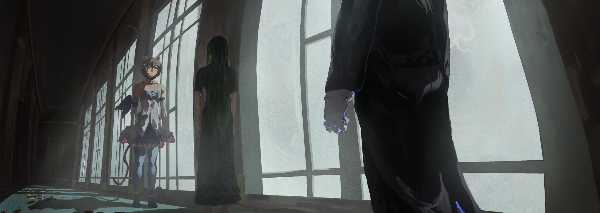 Fark ettiğimde olduğum yere yığılıvermiş, koridorun zeminine çöküp kalmıştım. Doğal olarak bana sarılan kişi―― Ferris de benimle birlikte yere çökmüştü.