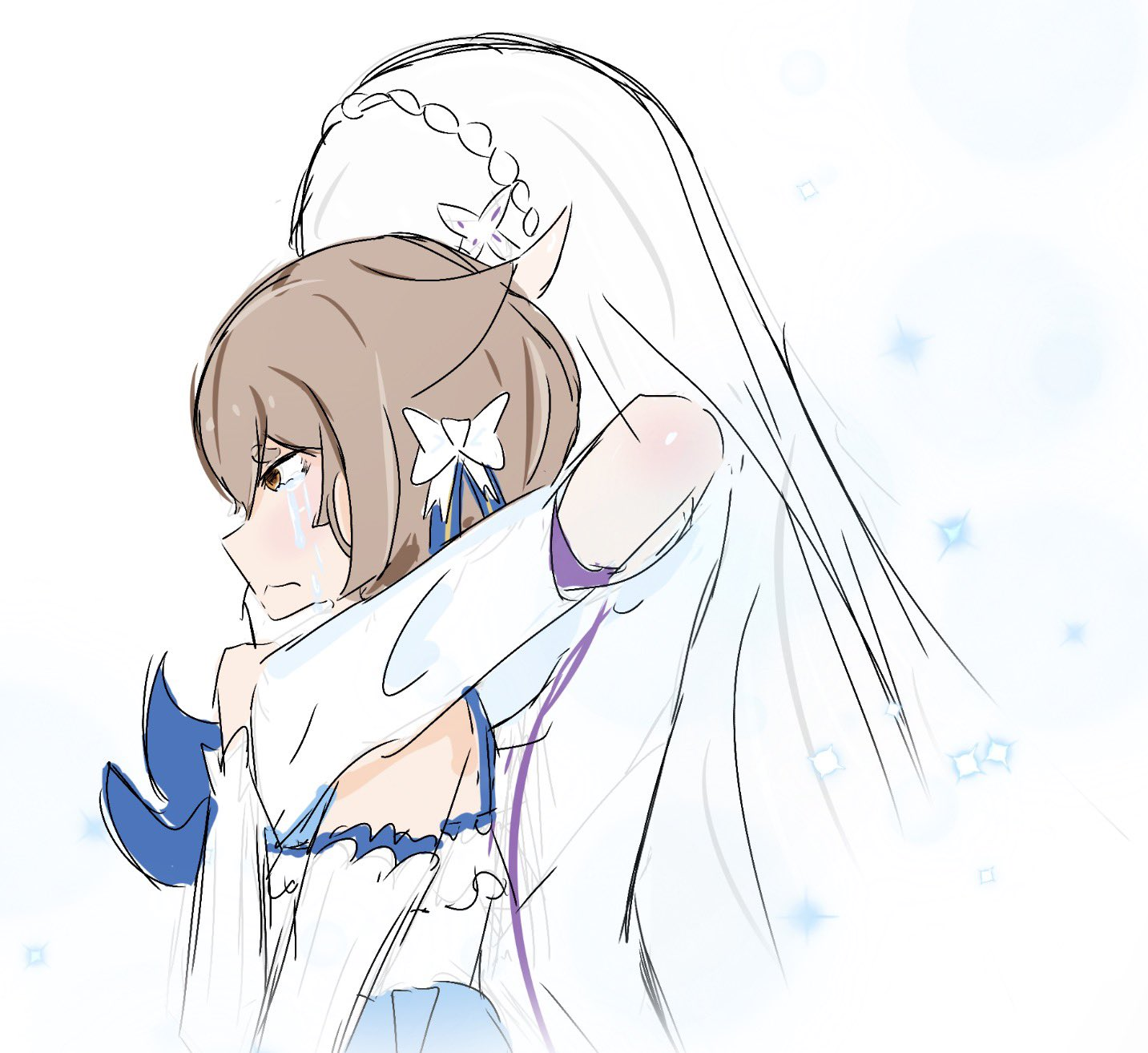 Kollarını fazla sıkmamaya özen gösteren Emilia, vücudunun sıcaklığının kollarındaki Ferris’e ve Crusch’a duyduğu endişenin ona ulaşmasını diledi.
