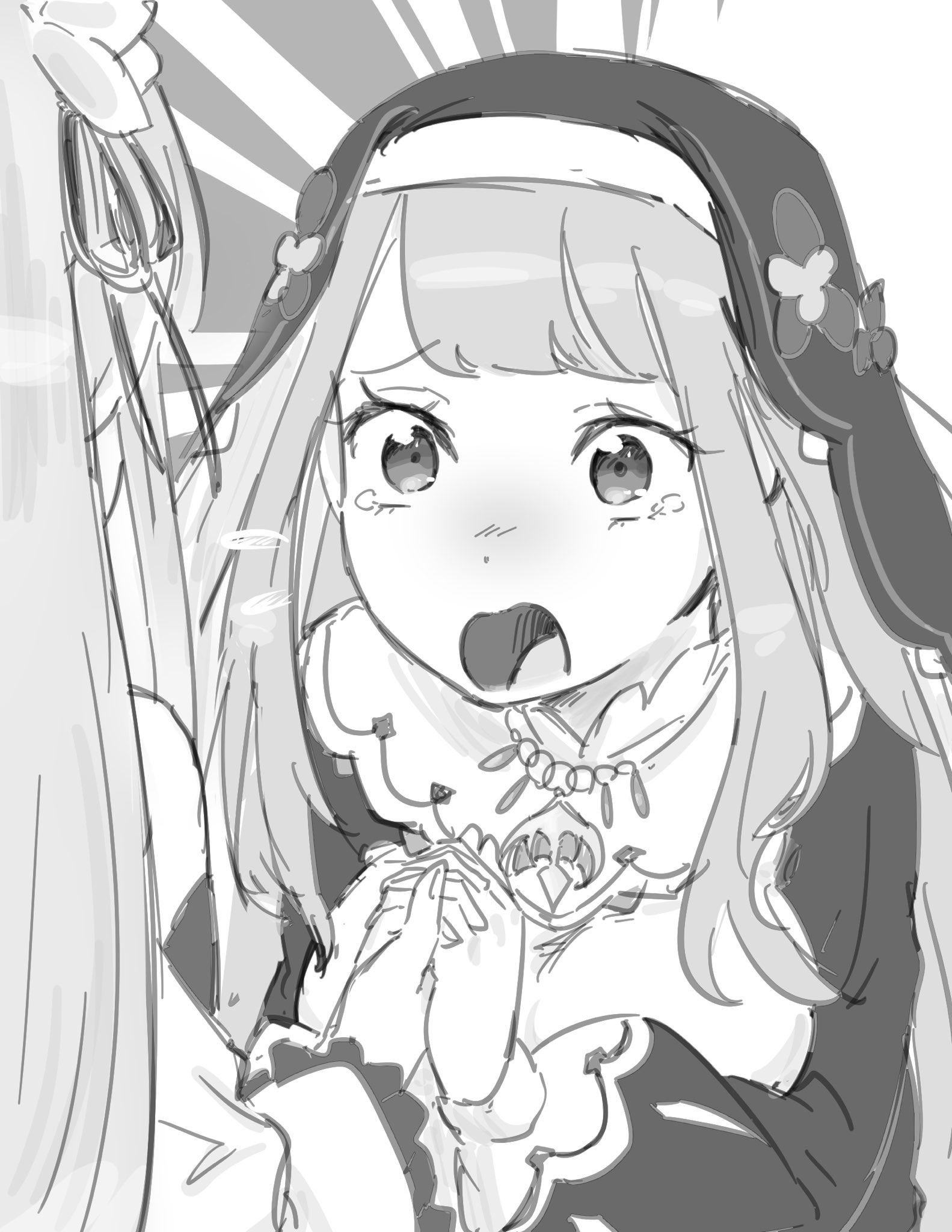 Filóre: “Tekrardan, buraya kadar zahmet ettiğiniz için teşekkür ederim. Ben Filóre… Şu sıralar Kraliyet Sarayı’nı epey ayağa kaldıran İlahi Ejderha Kilisesi rahibesiyim.”