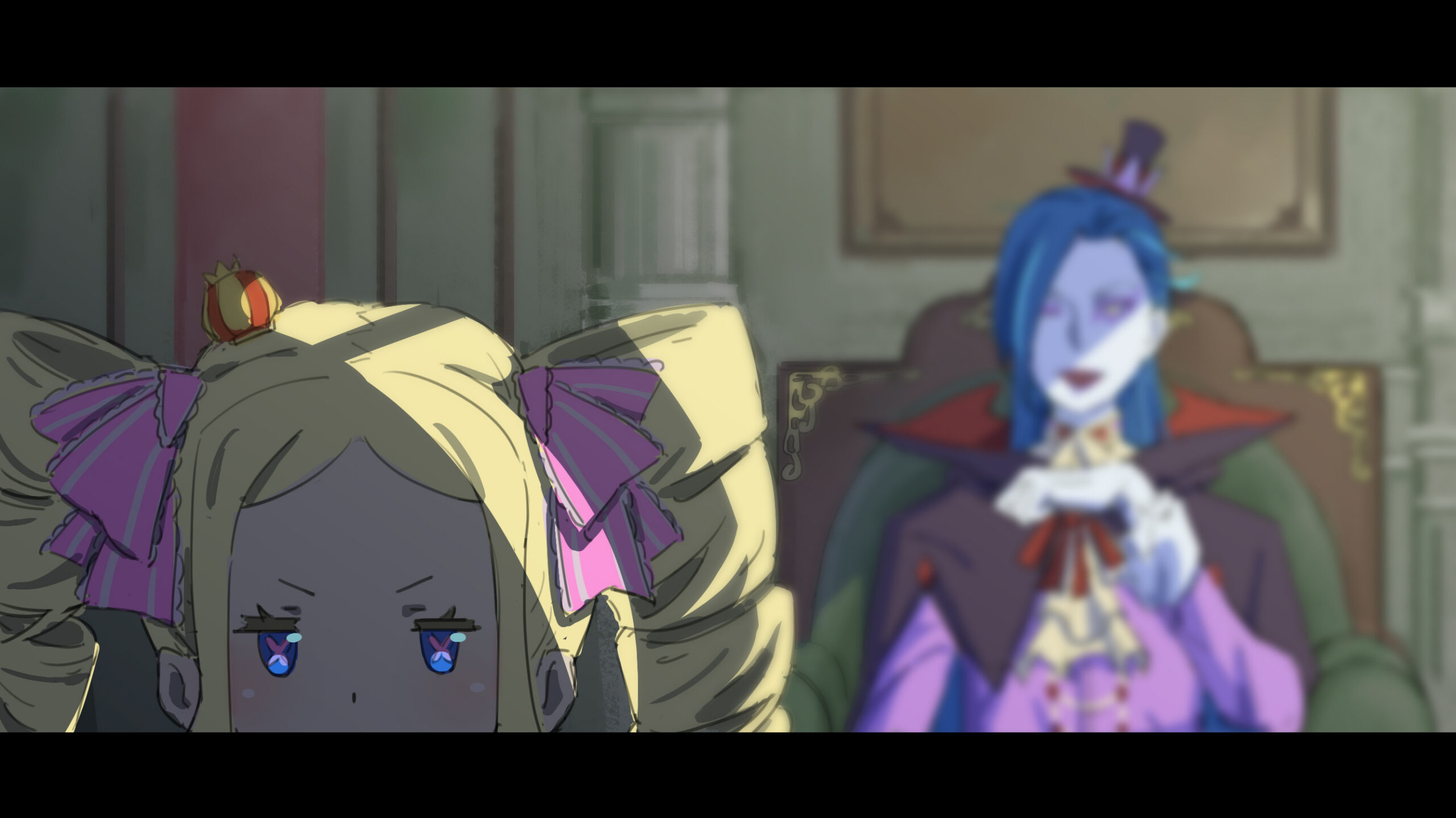 Beatrice kendisi ayakta dururken kanepede oturmayı sürdüren Roswaal’a gözlerine yerleşen benzer yoğunlukta bakışlarla meydan okuyordu. Roswaal ise yuvarlak gözlü kızın kalbinin derinliklerine sızmaya teşebbüs edercesine gözlerini kısarak…
