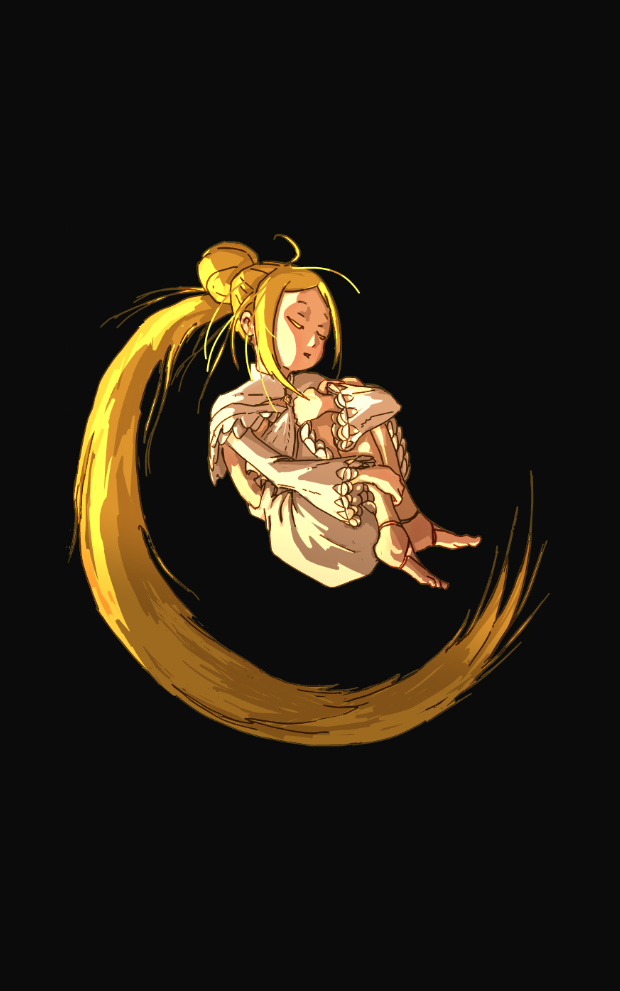 Örgüler, tokalar ve çeşitli düğümlerden oluşan garip bir saç modeli olan altın saçlı bir kızdı. On ikiyle on üç yaşlarındaymış gibi görünen kız, şaşkınlık dolu bir yüz ifadeyle etrafındaki yetişkinlere bakıyordu.