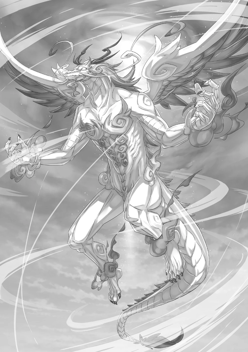 Saf beyaz kanatlarını göğe açan, kapalı bir gökyüzünün özünü bedenine sarmış devasa bir varlık―― Madelyn Eschart’ın çağrısıyla『Bulut Ejderhası』Mezoreia, İmparatorluk Başkenti’nin semalarına doğru yıldırım gibi iniverdi.